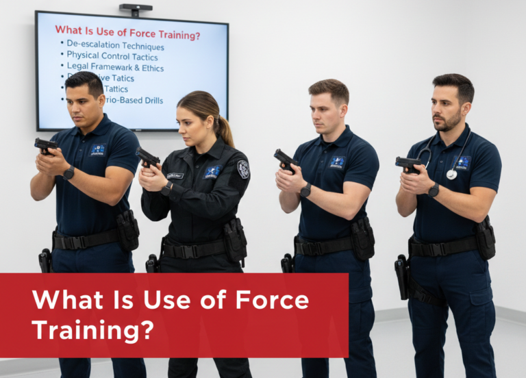 Many employers require Use of Force training for licensed security guards, especially those carrying handcuffs or batons.